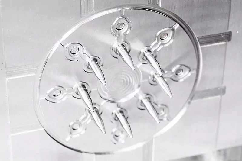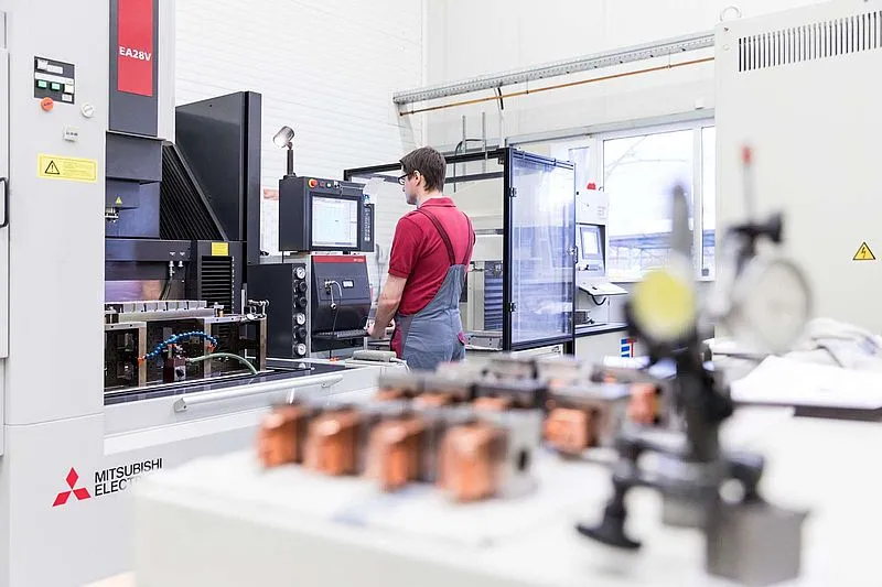 Dank unseres modernen Maschinenparks können wir auch Kundenwünsche nach Spezialwerkzeugen erfüllen. Unsere Fertigung umfasst beispielsweise auch variotherme Spritzprägewerkzeuge. Um diese herzustellen wird die Form mit 170° C heißem Wasserdampf erhitzt. Erst dann erfolgt der Spritzvorgang. Indem wir die Form danach sofort mit kaltem Wasser spülen, reduzieren wir die Zykluszeit beim Kunststoffspritzen erheblich. Die so gefertigten Spritzgussteile können wir anschließend so prägen, dass sie ohne Verzug sind, also ohne optische Einschränkungen ausgeliefert werden können.